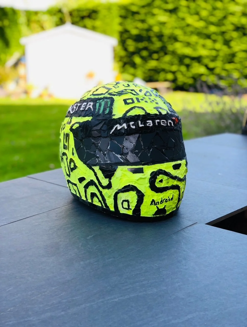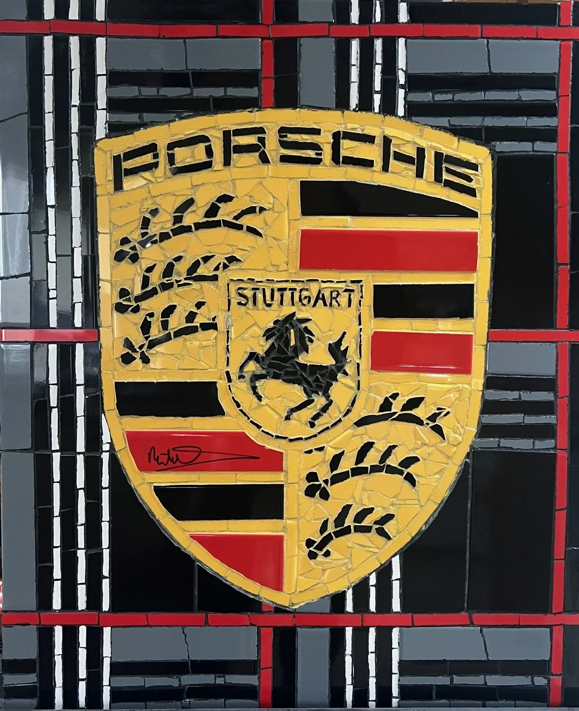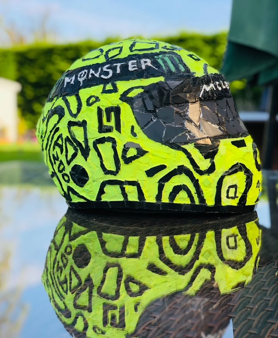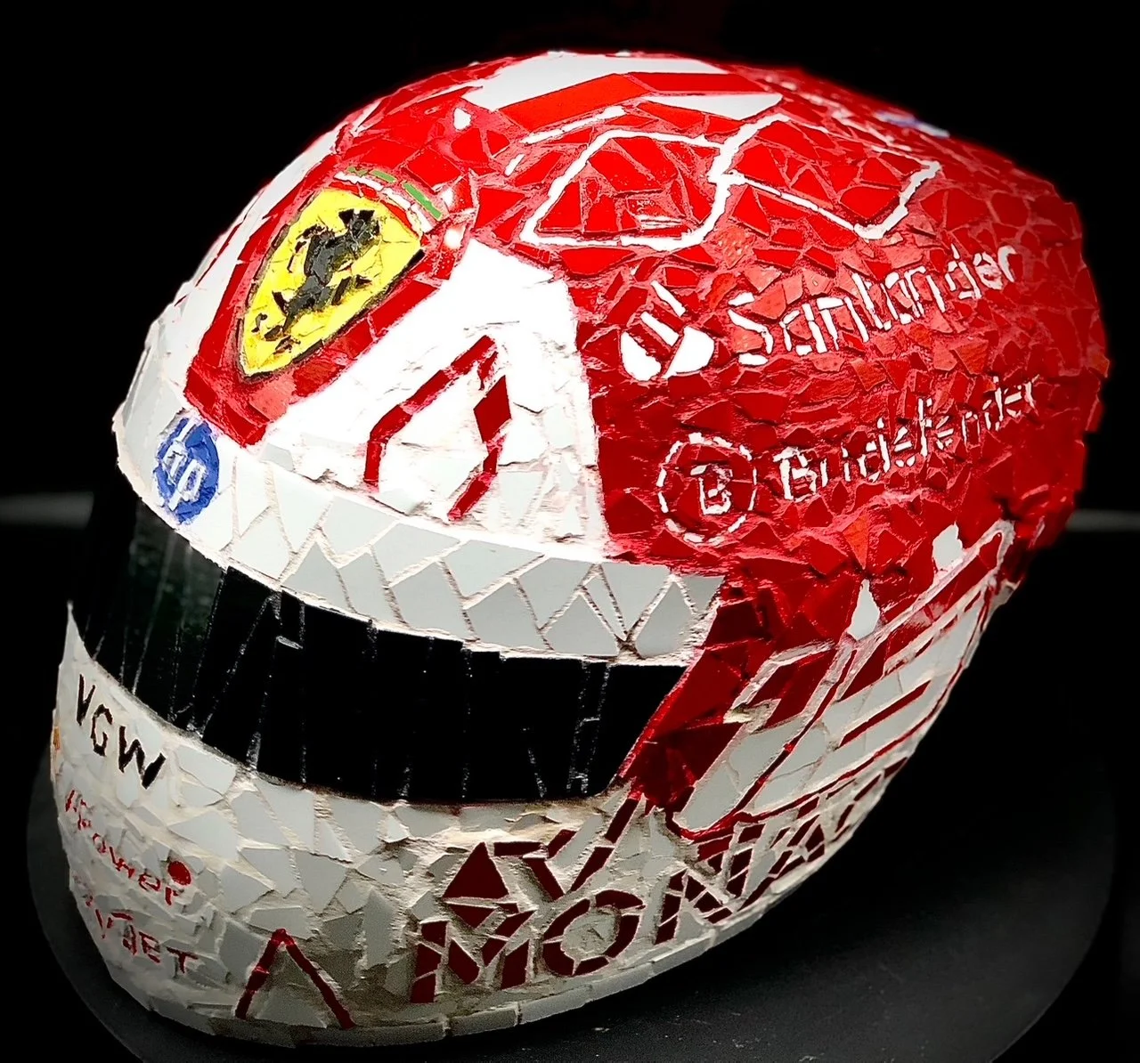 Originally from Liverpool and now based in rural Lancashire, O’Brien first discovered his passion for mosaic after visiting Barcelona’s Park Güell. Today, his artworks celebrate everything from Formula 1 heroes to classic road cars, with painstaking attention to detail and design integrity. His signature mosaic helmets, crests , and wall pieces have earned collectors across the UK and internationally.